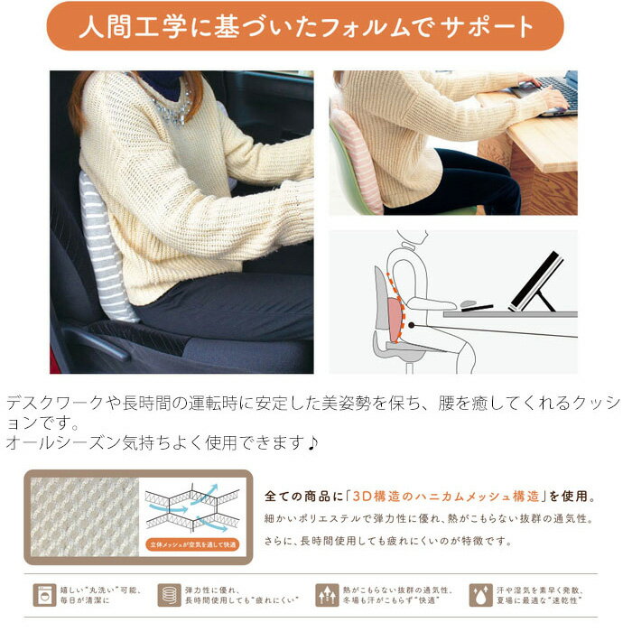 商品説明商品詳細 オールシーズン使用可能なハニカムメッシュ構造デスクワークや長時間の運転時に安定した美姿勢を保ち、腰を癒してくれるクッション オールシーズン気持ちよく使用できるクッション 3D構造のハニカムメッシュ構造丸洗い可能細かいポリエステルで弾力性に優れ、長時間使用しても疲れにくい仕様 立体メッシュで熱がこもらない抜群の通気性汗や湿気を素早く発散する速乾性サイズW35×D35×H6cm 素材カバー:綿100%生産国 中国品番 563244 / ピンク563251 / ネイビー 563268 / グレーご注意 ※商品撮影にはデジタルカメラを使用しております。