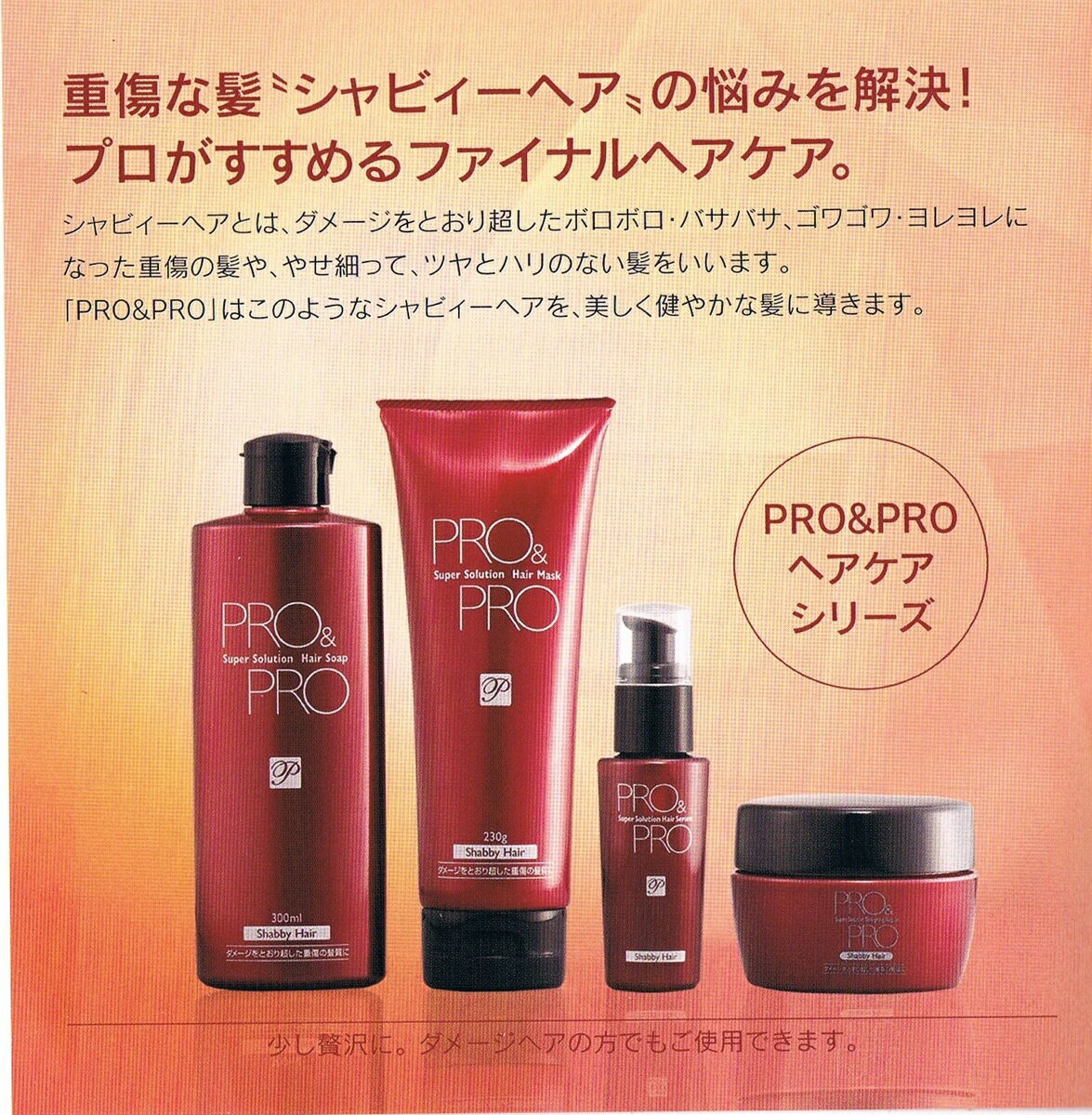 「プロ&プロ」はこのようなシャビィヘアを美しく健やかな髪に導きます。