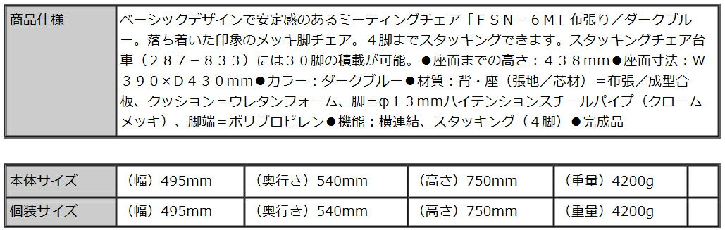 PLUS JOINTEX 会議イス 4脚セット FSN-6M 【 布張り ダークブルー色 】 【 安定感のあるミーティングチェア 】 【 完成品渡し 】 プラスジョインテックス チェア