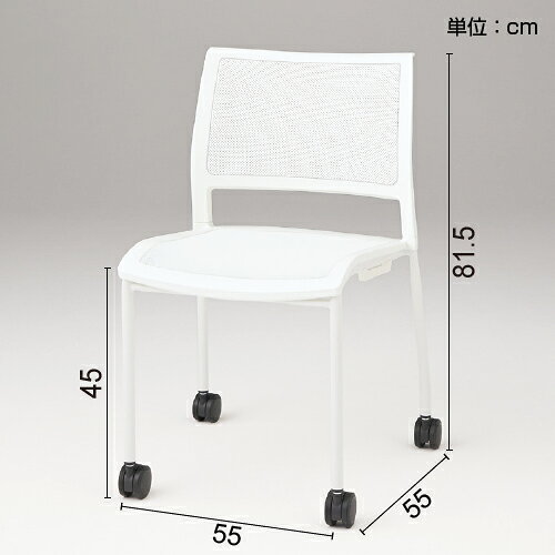 仕様・規格カテゴリミーティングチェア > キャスター付 > 肘無しデザインイトーキ サイズW55×D55×H81.5cm(SH:45cm)材質■背・座フレーム:ポリプロピレン樹脂■背・座:メッシュ張り■脚フレーム:Φ22.2mmスチールパイプ粉体塗装仕上■キャスター:Φ60mmウレタン双輪納期■イトーキ商品は多くがご注文をいただいてから商品をお作りしておりますが、こちらは人気商品のため早くお届けできるよう調整しております。