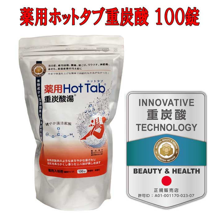 直ぐに使えるクーポン付き☆重炭酸湯 薬用ホットタブ HOTTAB 100錠 薬用重炭酸タブレット 重炭酸湯 重炭酸イオン 重炭酸spa hot tab イオン 半身浴 重炭酸スパ 炭酸入浴剤